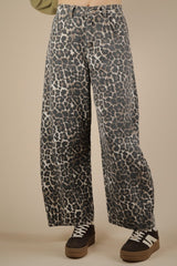 Leopard printed barrel pants